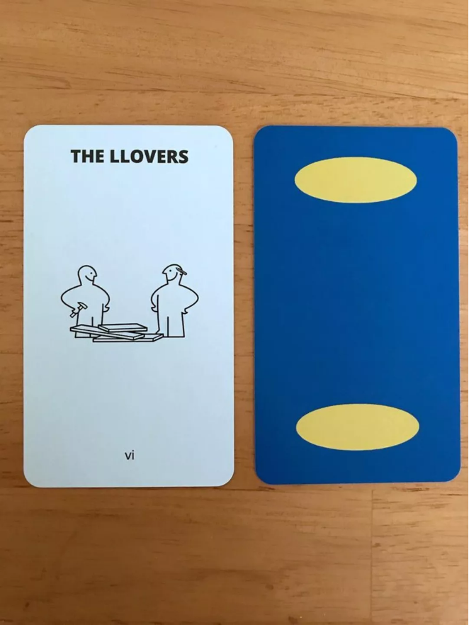 与传统塔罗牌不同的是,这款牌面采用简洁的黑色线条配以白色背景,呈现的画面均是与ikea有关的内容(如家具、ikea建筑等)