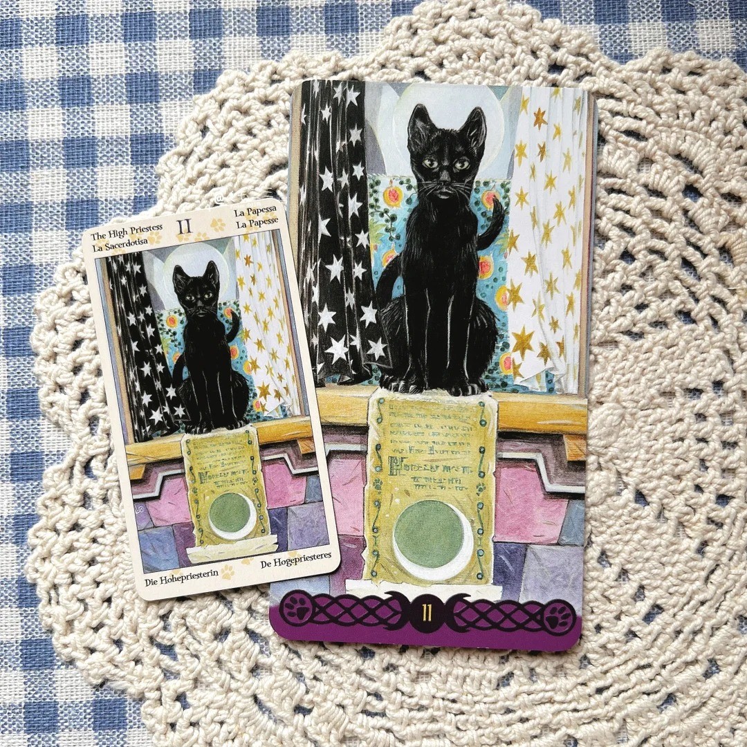 这是由意大利圣甲虫公司制作印刷的异教徒猫咪塔罗,非常有趣且精美。相比经典韦特会更具有猫本身冷峻和疏离感。