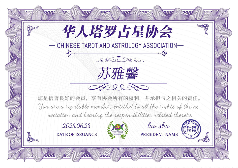 协会认证:华人塔罗占星协会认证 塔罗心理解读师