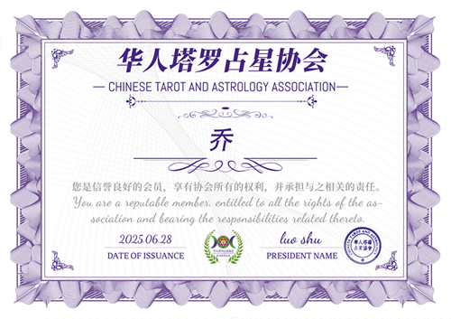 协会认证:华人塔罗占星协会认证 塔罗专业咨询师、洛书塔罗知识体系助教老师
