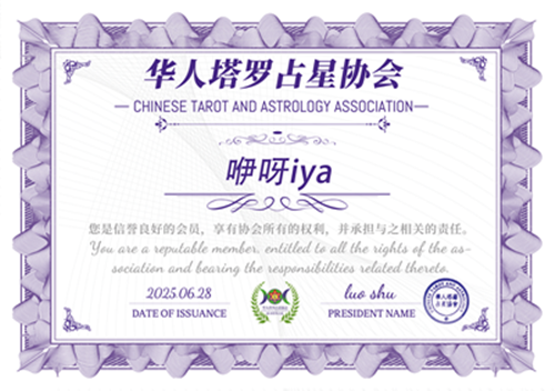 协会认证:华人塔罗占星协会认证 高阶塔罗导师/洛书塔罗体系助教老师