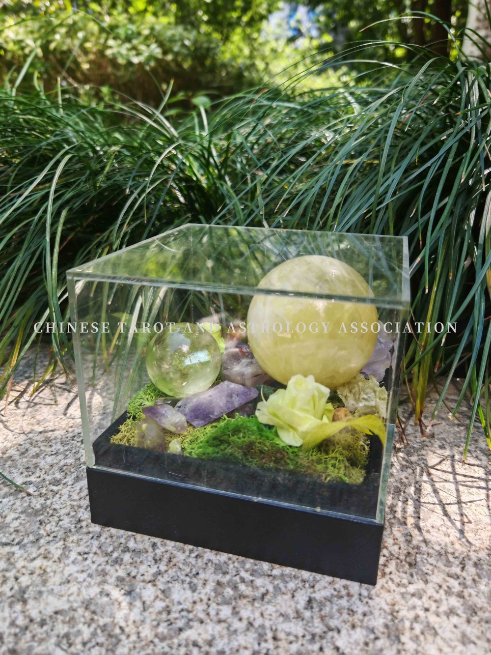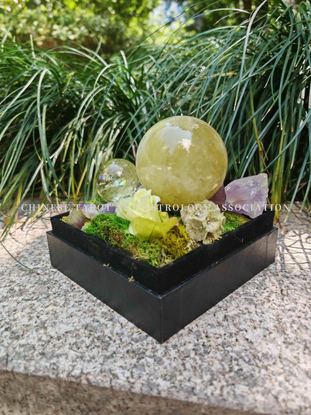 白水晶球黄水晶球盆栽摆件
