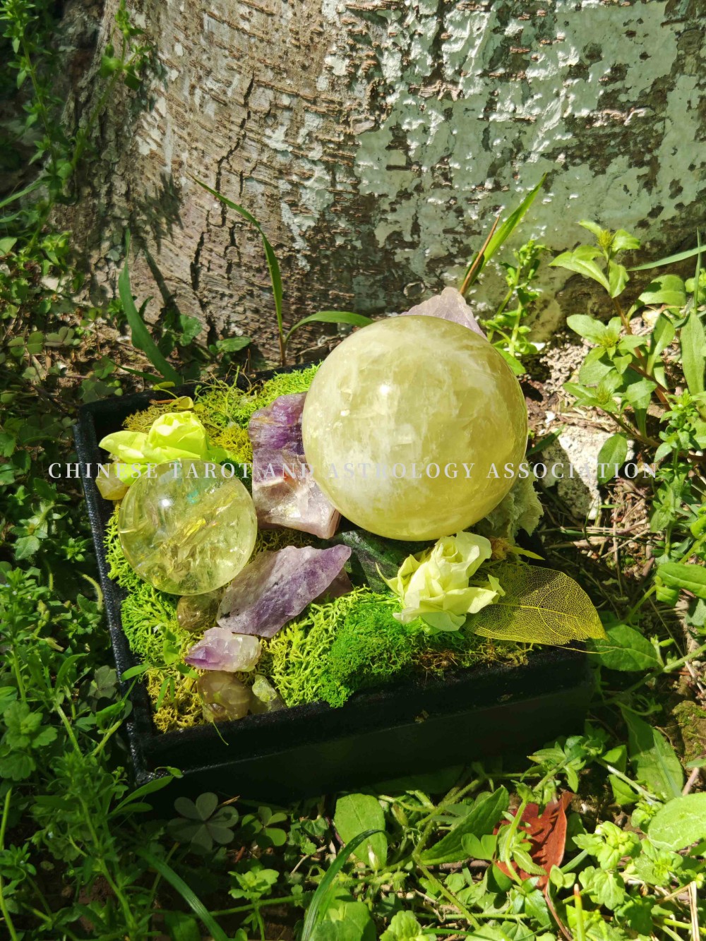 白水晶球黄水晶球盆栽摆件