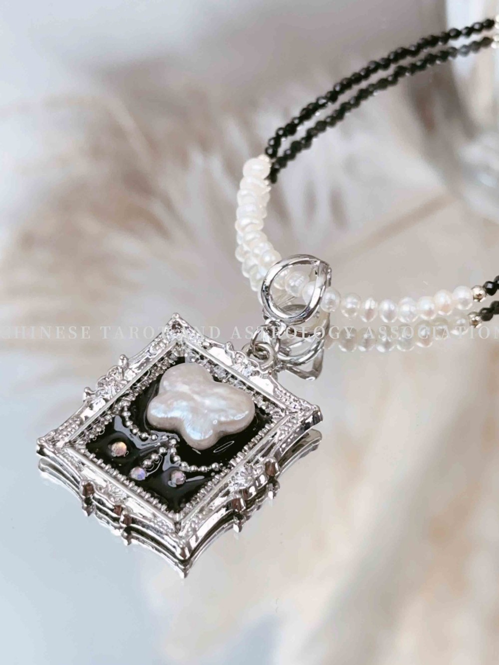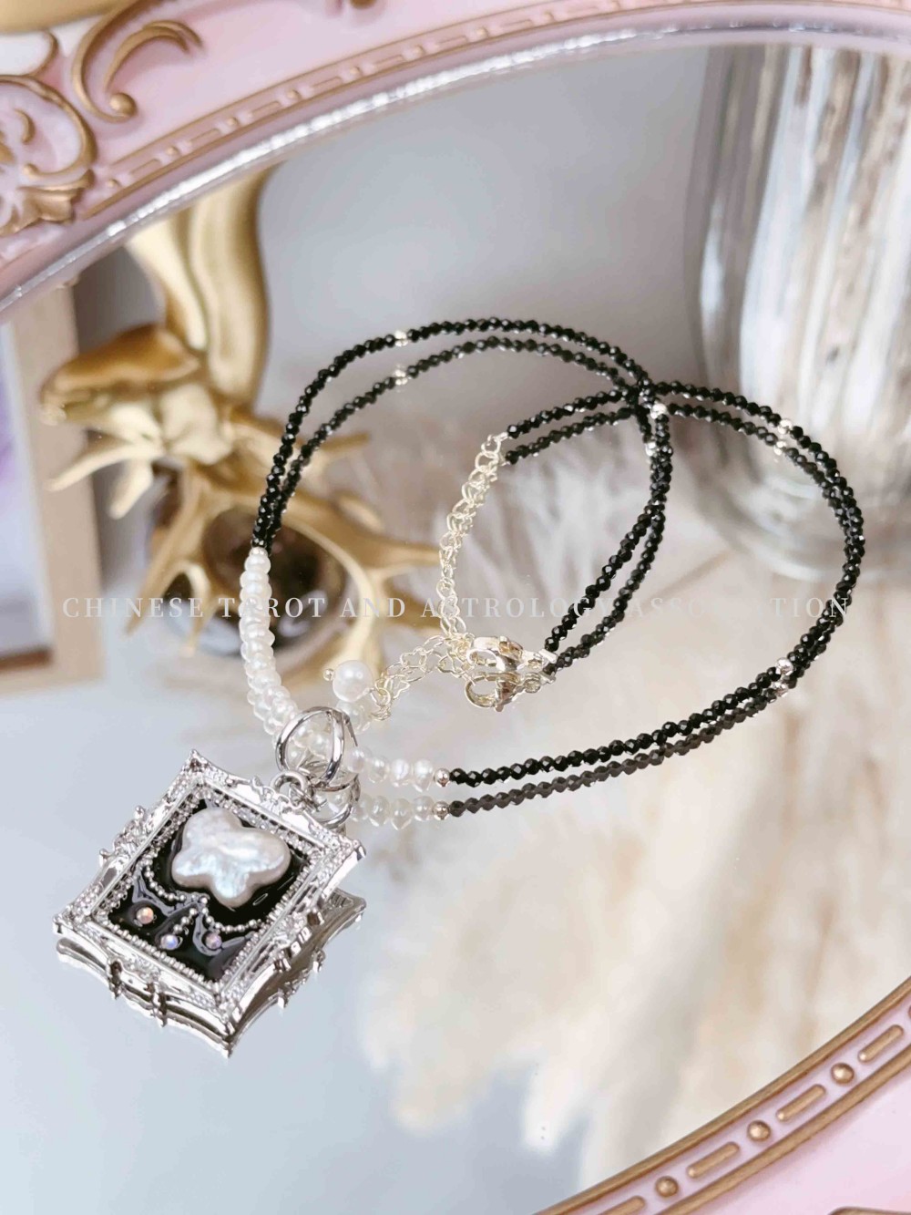 (珍珠蝴蝶坠 黑尖晶石珍珠细珠)项链